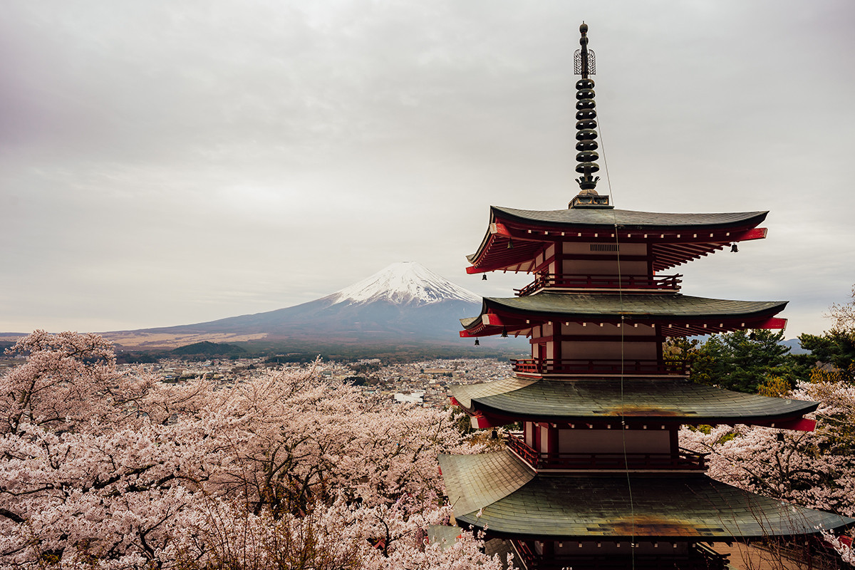 Най-добрата гледка към Фуджи е от емблематичната Пагода Чурейто, откъдето я видяхме и ние.